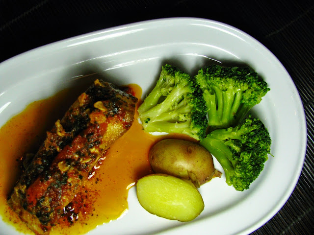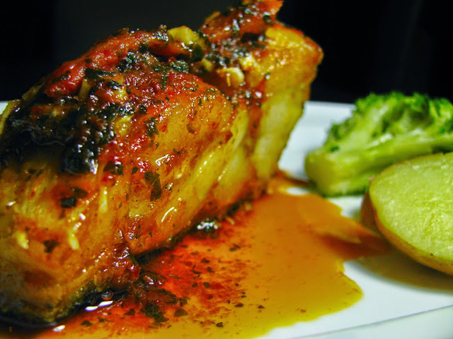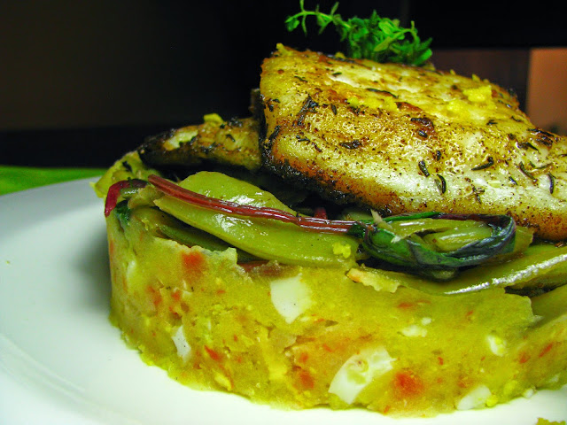 Corte 2 cebolas às rodelas e leve-as ao lume numa frigideira com uma quantidade generosa de azeite. Quando amolecerem adicione os alhos laminados, o pimento cortado em tiras e a malagueta em rodelas finas e sem sementes. Tempere com sal, pimenta, coentros em pó, pimentão doce e sumo e raspa de limão a gosto. Deixe refogar em lume brando e acrescente um raminho de salsa picada.
