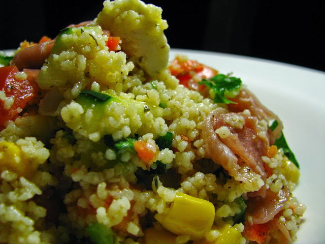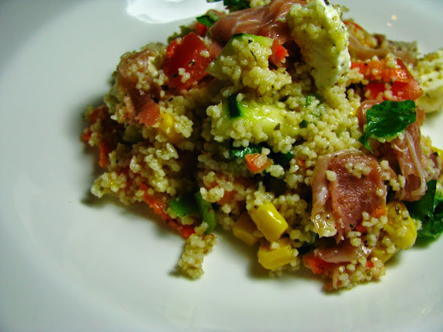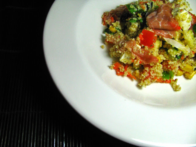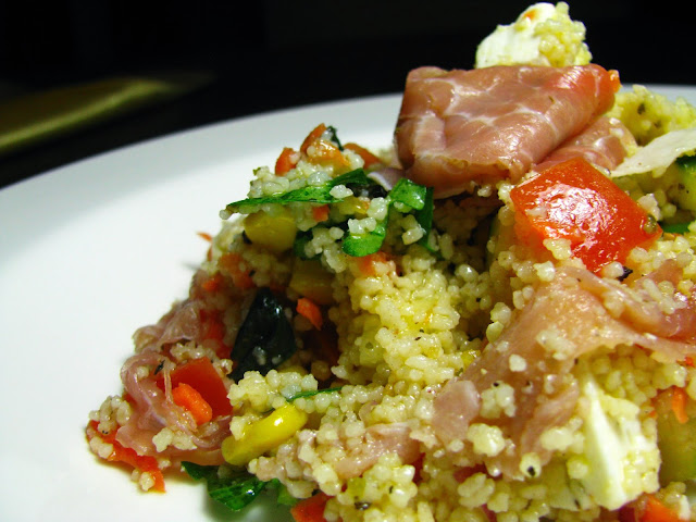 Salada de couscous com presunto e queijo feta