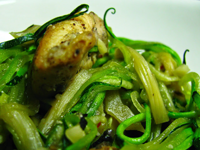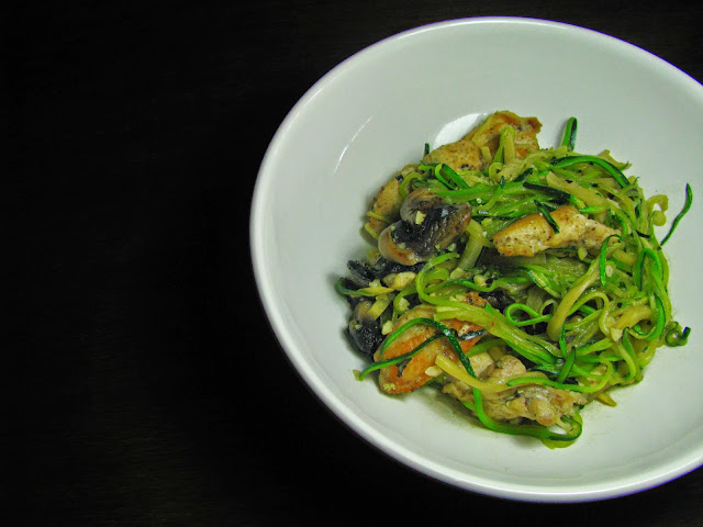 A sugestão de hoje foi o encontro perfeito entre duas coisas que adoro: curgetes e sabores da Ásia. Em vez de massa chinesa usei curgetes, temperei com molho de ostras e polvilhei com amêndoas. Uma refeição leve, excelente para os dias quentes e muito, muito aromática.