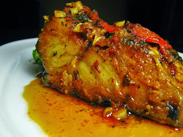 Espadarte com pimenta da terra e alho