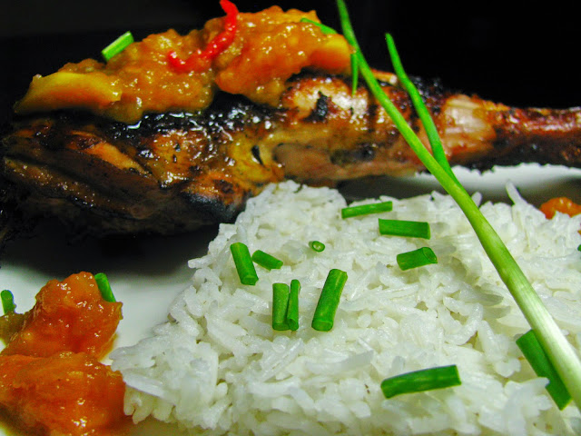 Sirva as pernas de frango com este molho exótico por cima e acompanhe com um arroz basmati simplesmente cozido e aromatizado com cravinho.