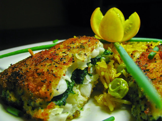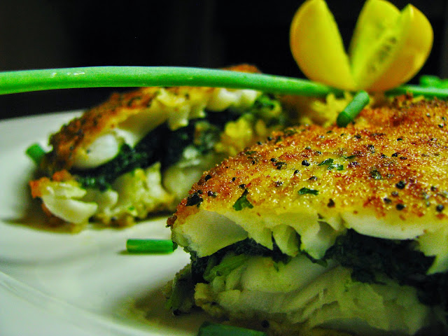 Este prato é excelente para quem como eu não aprecia muito pescada. Fica muito saboroso com o recheio de espinafres e queijo da ilha e além disso bastante apelativo ao olhar.