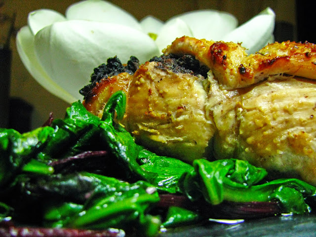 O menu é um frango do campo e vem recheado com maçã e com morcela de S.Miguel, a minha preferida de todas. A acompanhar temos um legumes que vieram directamente da minha horta para a cozinha.